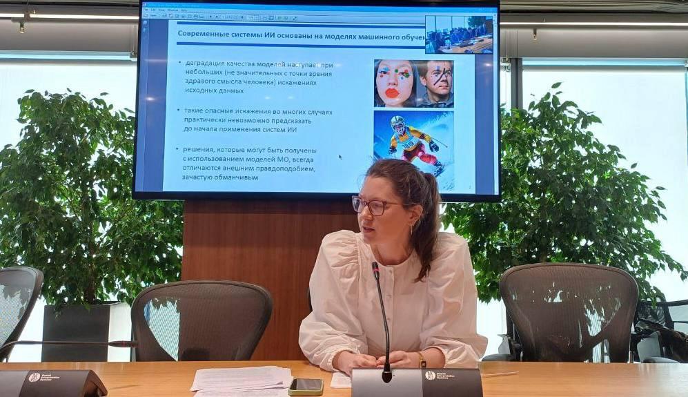 В завершении доклада Майя Рашидовна отметила актуальность продолжения данных работ, в том числе в части создания инфраструктуры оценки соответствия установленным требованиям технологий ИИ, применяемых в образцах ВВСТ, для обеспечения безопасности государства.