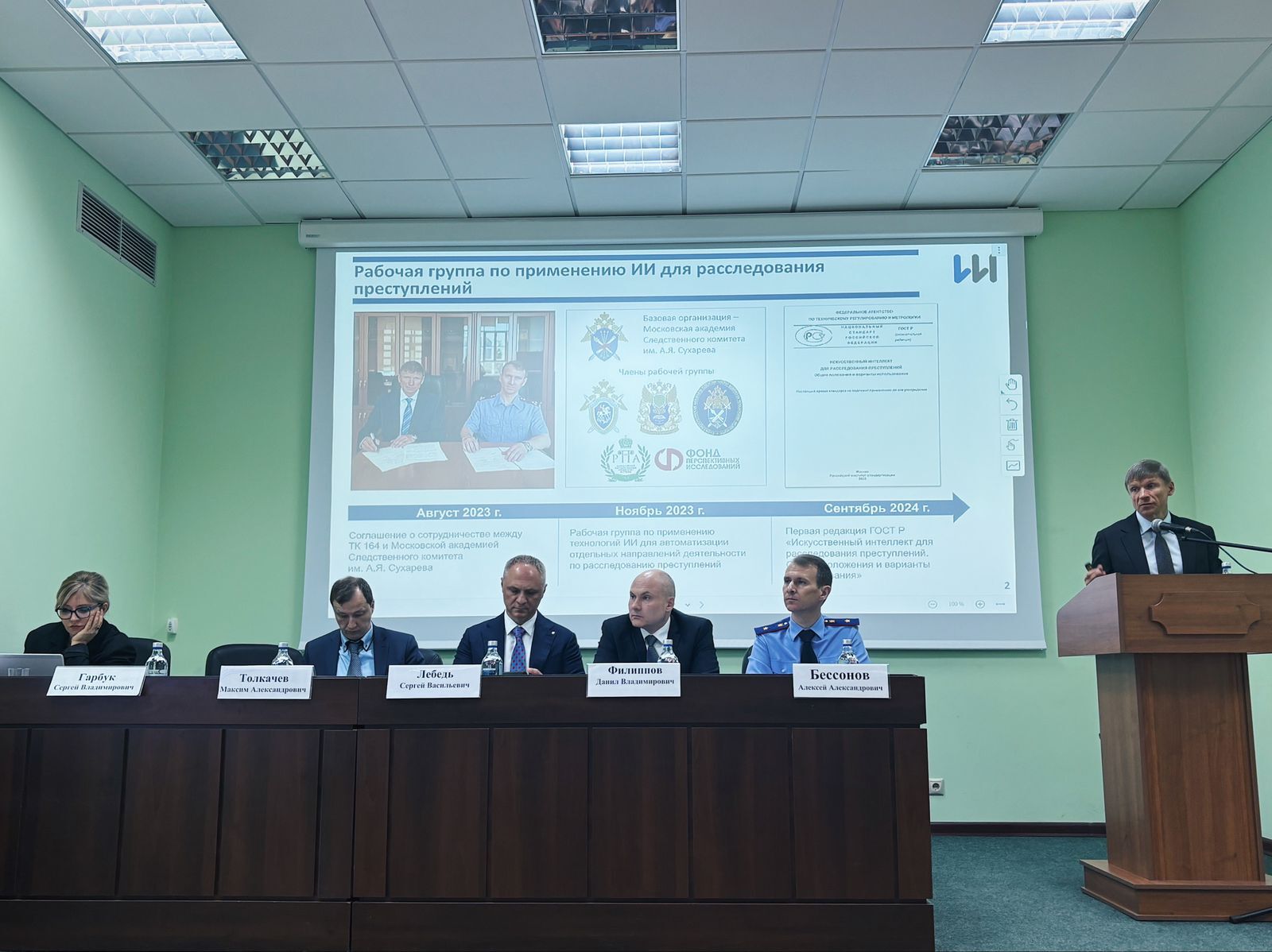 Завершая выступление, председатель ТК 164 отметил важность разработки стандарта с аспектом «методы испытаний» алгоритмов ИИ для расследования преступлений, а также создания испытательной лаборатории алгоритмов ИИ в области правоохранительной деятельности.