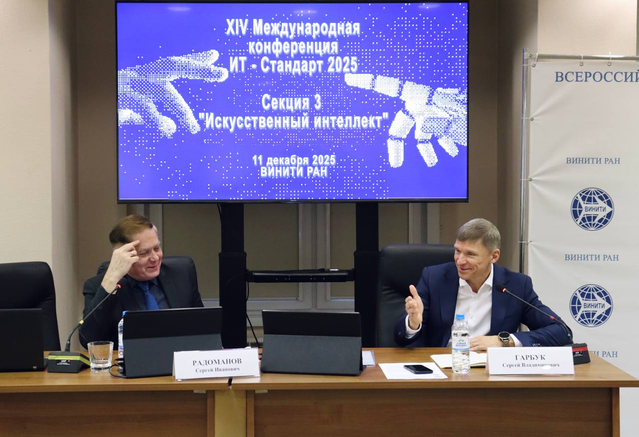 11 декабря 2025 года в ВИНИТИ РАН состоялась секция 3 «Искусственный интеллект» XIV Международной научной конференции «ИТ-стандарт-2025». Модератором секции выступил Сергей Гарбук, и.о. директора ВИНИТИ РАН, председатель ТК 164 / МТК 566 «Искусственный интеллект», к.т.н.